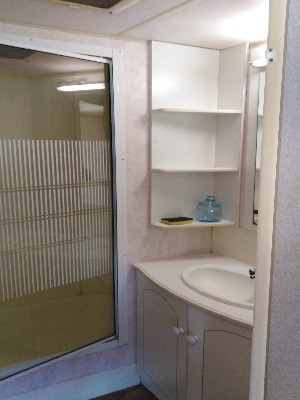 Un bloc sanitaire avec eau chaude et froide, douche et wc,1 bac à vaisselle, 1 bac à linge.